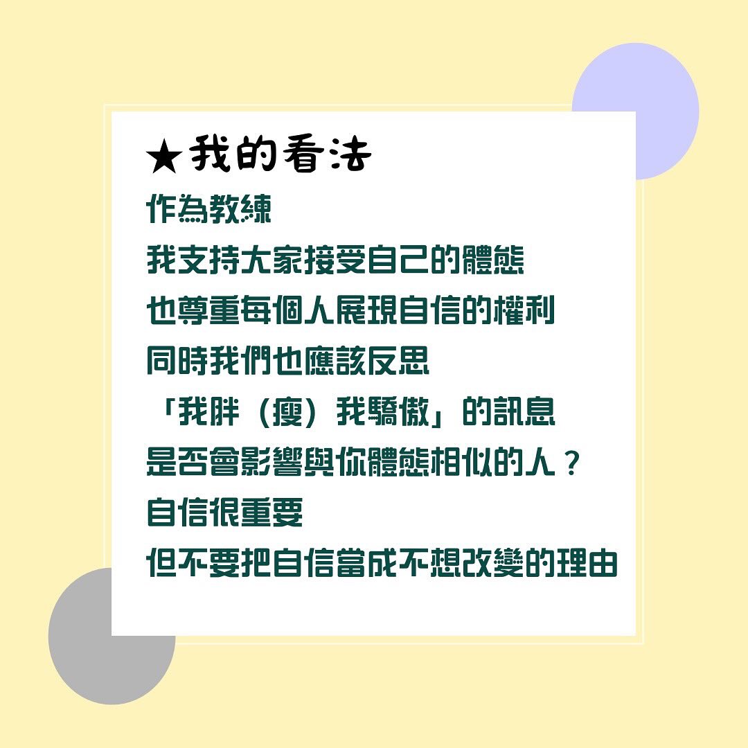 關於「我胖我驕傲」 #台中私人教練推薦 #台中健身團課 #台中運動按摩