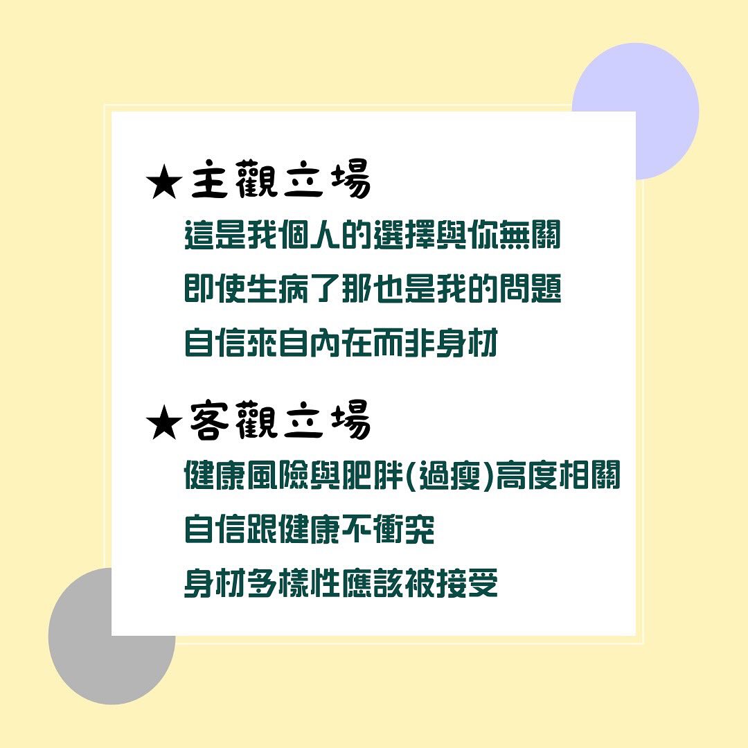 ◇我的身材及生活方式是我個人的選擇,與你們無關